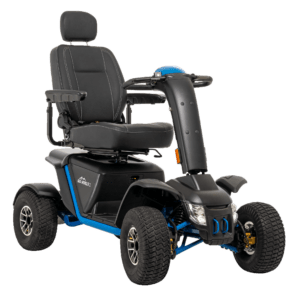 Built for users who genuinely need off-road capability, the Baja Wrangler from Pride Mobility is a heavy-duty, four-wheel mobility scooter designed to cope with terrain that would quickly defeat conventional pavement-focused models.